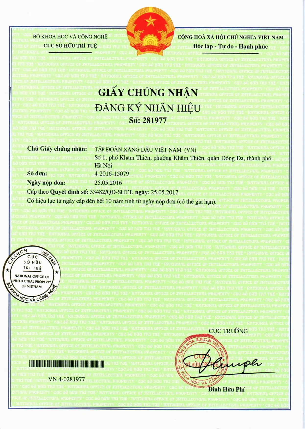 Giai đoạn 4: Cấp văn bằng – Cấp giấy chứng nhận đăng ký nhãn hiệu trong 01-02 tháng sau khi có kết quả thẩm định nội dung.