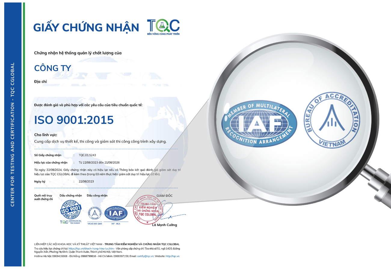 – Hiệu lực của giấy chứng nhận ISO 9001 (tại đây)